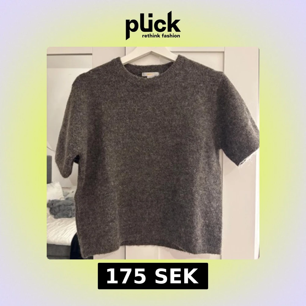 Säljer en mysig grå/brun stickad tröja med korta ärmar. Perfekt för kyliga dagar och enkel att matcha med olika outfits. Tröjan har en klassisk rund hals och en bekväm passform. Storlek: 158/164