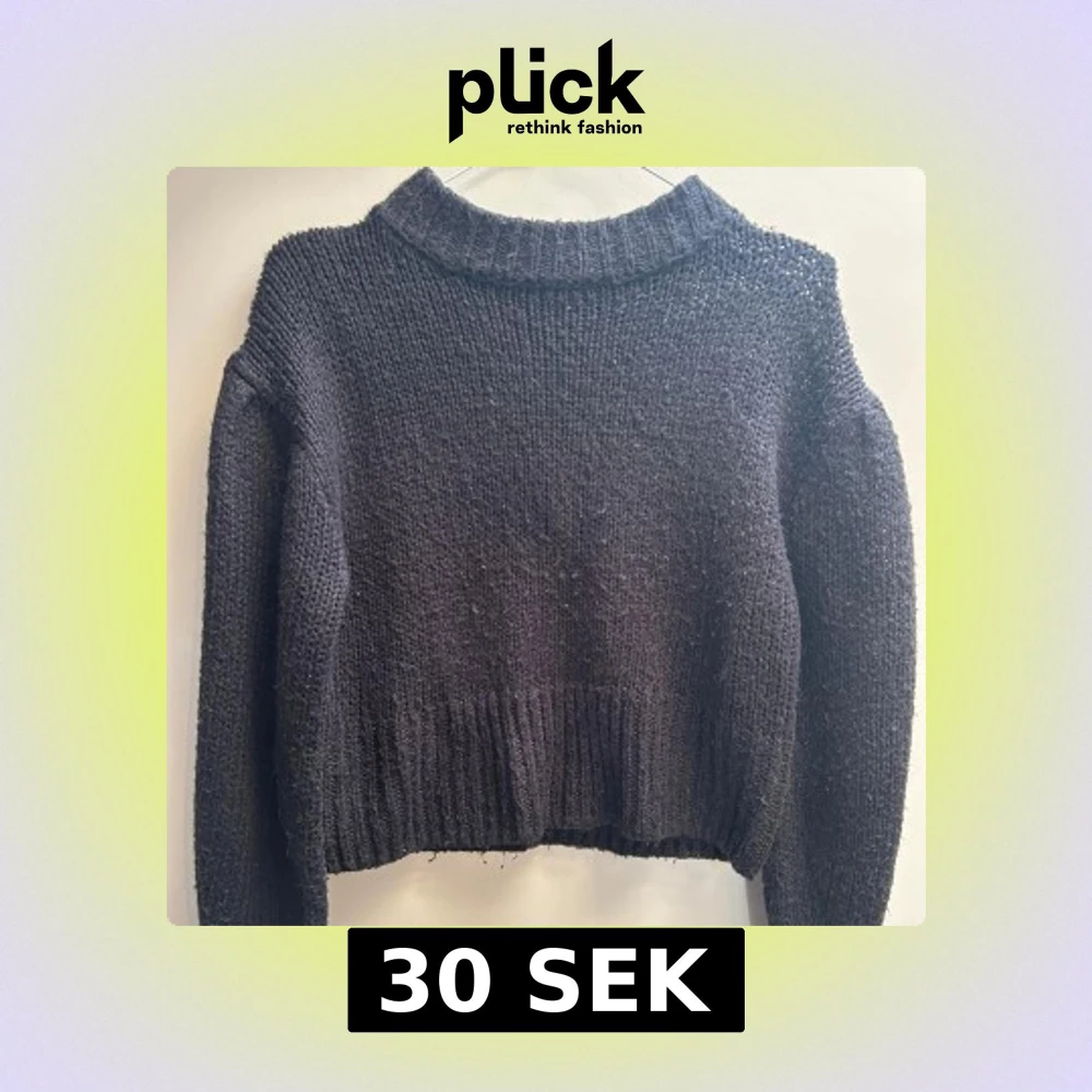 Mysig svart stickad tröja med hög ribbad krage och långa ärmar. Tröjan har en loose passform och bred ribb vid nederkant och ärmslut. Perfekt för kyliga dagar och enkel att matcha med jeans eller kjol.