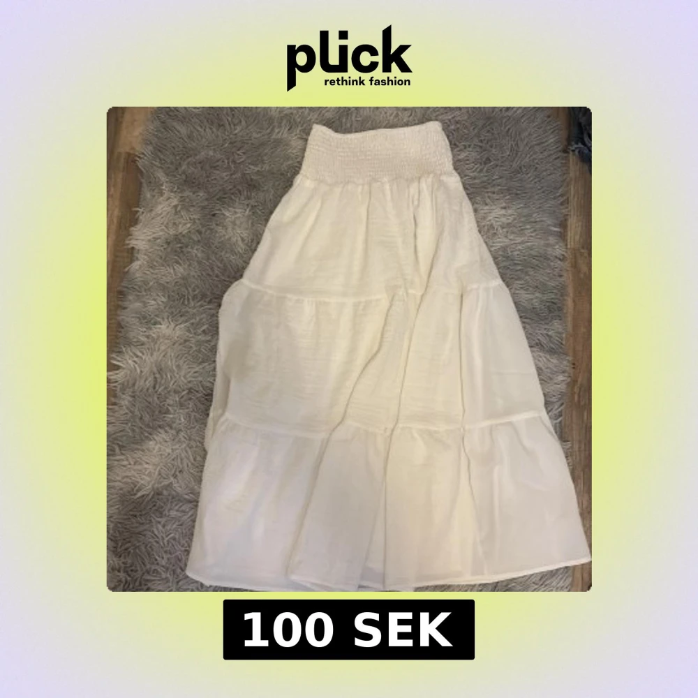 Superfin vit långkjol från SHEIN i storlek XS. Kjolen har smockad midja och flera volanger som ger en flowy och luftig känsla. Tillverkad i ett lätt och skönt polyestertyg, perfekt för varma dagar. Enkel att matcha med crop tops eller stickade tröjor.