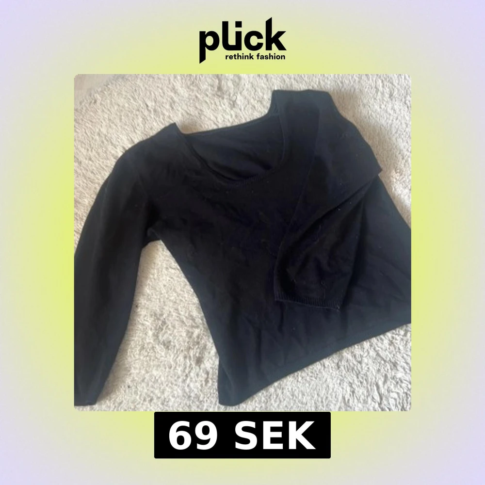En basic svart tröja med rund halsringning. Armarna går längst ut till armbågen. Står tyvär ingen storlek men skulle gissa på xs/s❤️