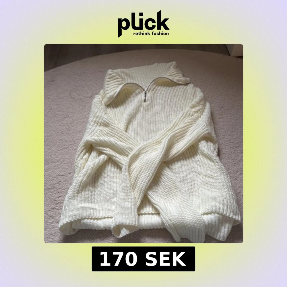 Säljer en krämvit stickad tröja med grov struktur och hög krage. Aldrig använd, och passar även storlek S 💕