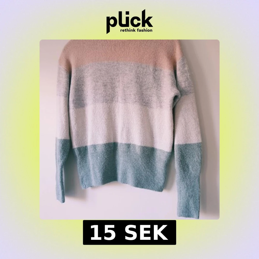 Supermysig stickad tröja från H&M LOGG i storlek XS. Tröjan har breda ränder i ljusrosa, grått, vitt och ljusgrönt. Den är långärmad och har ribbade muddar och nederkant. Perfekt för dig som gillar en chill och stilren look. Helt & fint skick dock noppror