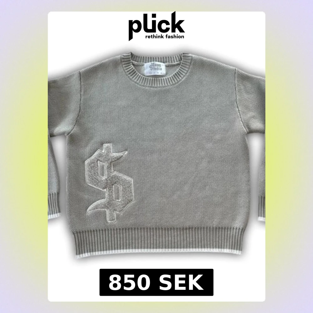 Snygg grå stickad tröja från Money Studio med stort dollar-tecken i frotté på framsidan. Rund hals och ribbade muddar vid ärmslut och nederkant. Perfekt för dig som gillar streetwear och vill sticka ut med en unik detalj.