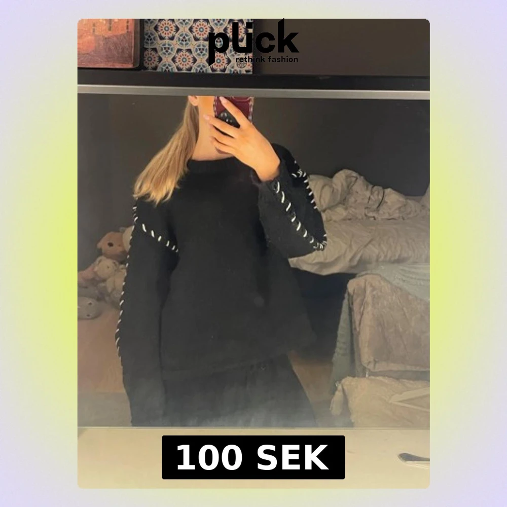 Säljer min svarta stickade tröja men vita detaljer. Har knappt använt den.