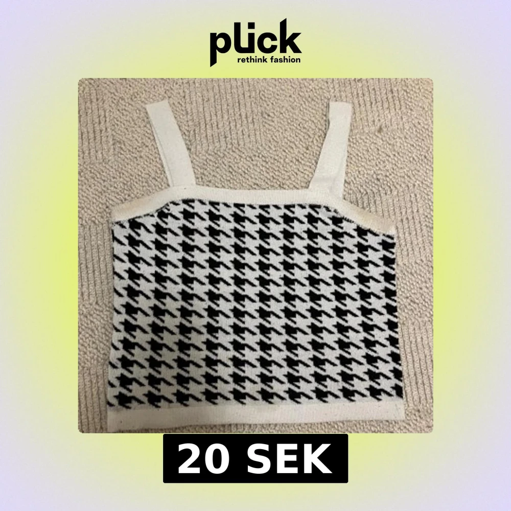 Snygg linnetopp med breda axelband och klassiskt svartvitt hundtandsmönster. Toppen är stickad och har en rak, croppad passform som ger en cool vibe. Perfekt att styla med jeans eller kjol för en trendig look.