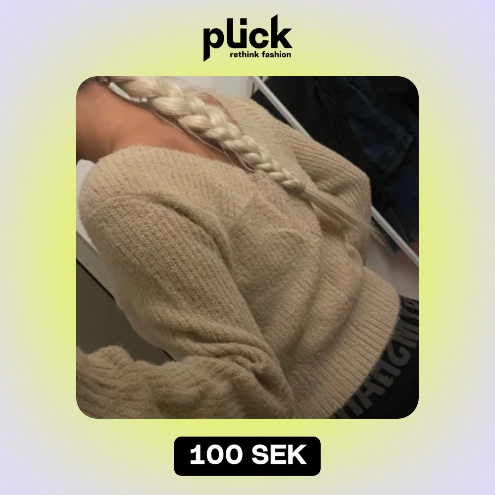 Stickad fluffig beige tröja med v-ringning både bak och fram, super fin och varm och skön tröja, köpt på H&M