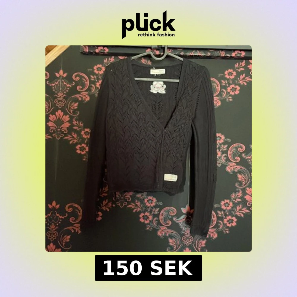 Säljer en elegant svart stickad kofta från Odd Molly med v-ringning och ett vackert spetsmönster. Koftan har långa ärmar och en fin broderad detalj på baksidan. Perfekt för att lägga till en touch av stil till din garderob. knappt använd