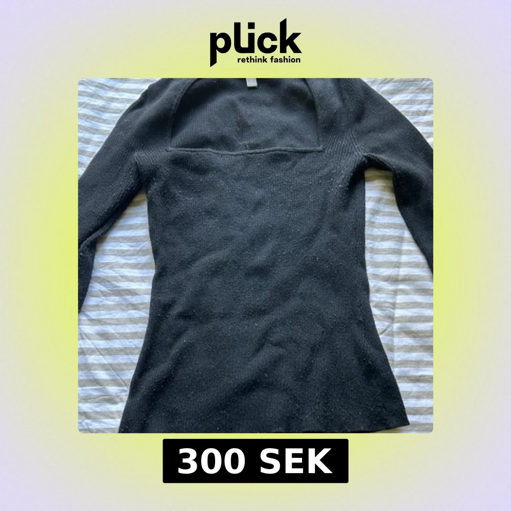 Svart stickad tröja från H&M/Monki i storlek M. Tröjan har ribbad struktur, lång ärm och en snygg fyrkantig ringning. Slitsdetalj vid ärmslutet och har inga defekter🫶🏻