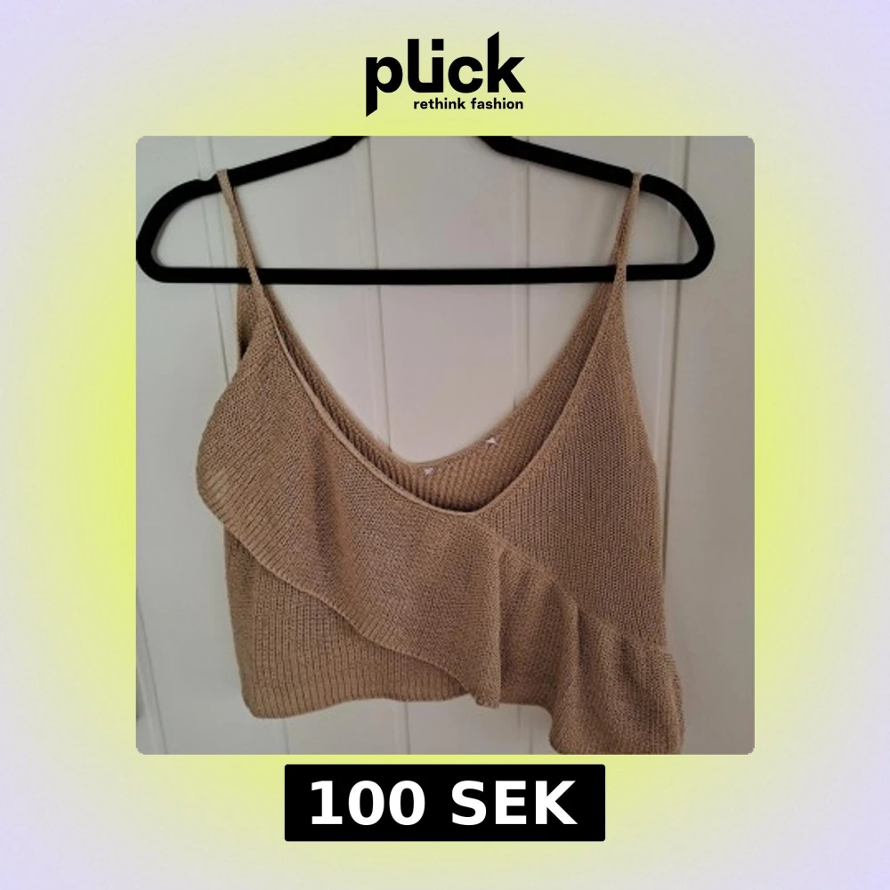 Säljer en beige stickad linnetopp med smala axelband och snygg volangdetalj framtill. Toppen är croppad och har en djup v-ringning, perfekt för varma dagar. Mjuk och luftig känsla tack vare det stickade materialet. Snygg Zara topp med volang, urringad, relativt kort modell i virkat. Passar till fest och vardag 🤩