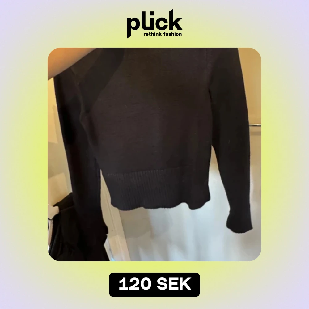 En svart långärmad tröja från Zara med ribbstickade detaljer vid halsringning, ärmslut och nederkant. Tröjan har en enkel och stilren design.