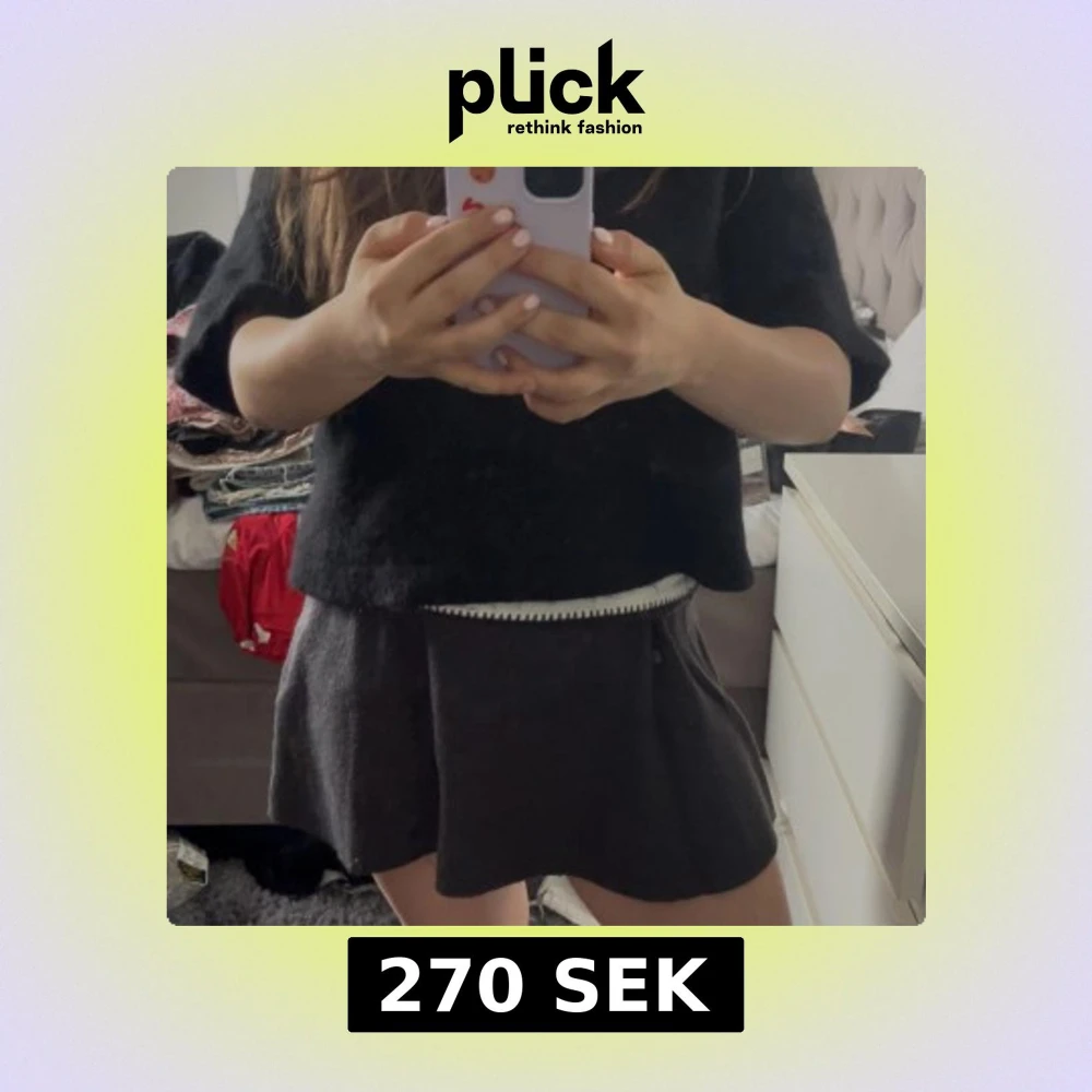 Svart stickad kjol från Zara med kort längd och lätt utsvängd form. Mjuk och bekväm, perfekt för lager-på-lager. Enkel design utan synliga detaljer, passar till många olika stilar.