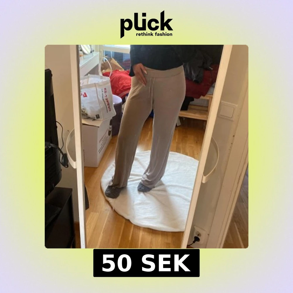 Säljer ett par bekväma beige stickade byxor från Zara. De har en loose passform och är utrustade med ett praktiskt knytband i midjan för justerbar passform. Perfekta för en avslappnad stil.