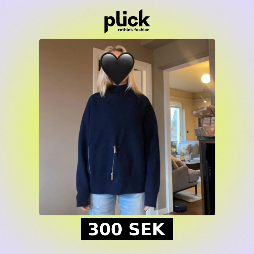 Snygg mörkblå polotröja från Zara i storlek M. Tröjan har en hög krage och cool detalj med två dragkedjor framtill.