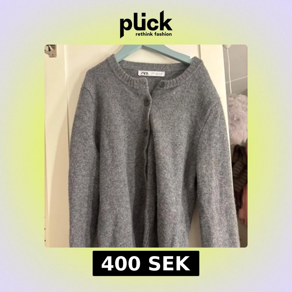 Mysig grå kofta från Zara med knappar framtill. Perfekt för kyligare dagar med sin stickade design och långa ärmar. Enkel och stilren, passar till det mesta i garderoben.