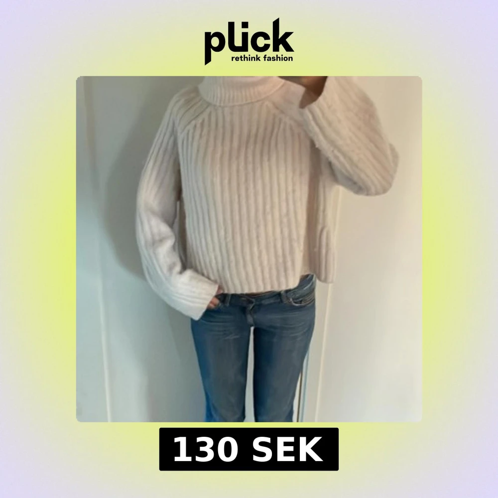 Vit polotröja i stickad material H&M XS - Mysig vit polotröja från H&M i stickad material, storlek XS. Tröjan har ribbad struktur och lång ärm, perfekt för kyliga dagar. Hög krage som ger extra värme och stil. Enkel att matcha med jeans eller kjol.