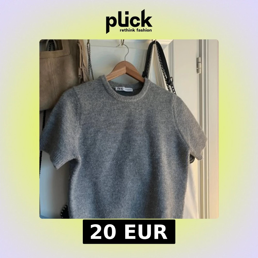 Mysig grå stickad tröja från Zara med korta ärmar och rund halsringning. Perfekt för lager-på-lager och enkel att styla till både jeans och kjol. Mjuk och skön känsla tack vare det stickade materialet. Ganska liten till storlek, alltså spänd men den är gjord så!!🩷