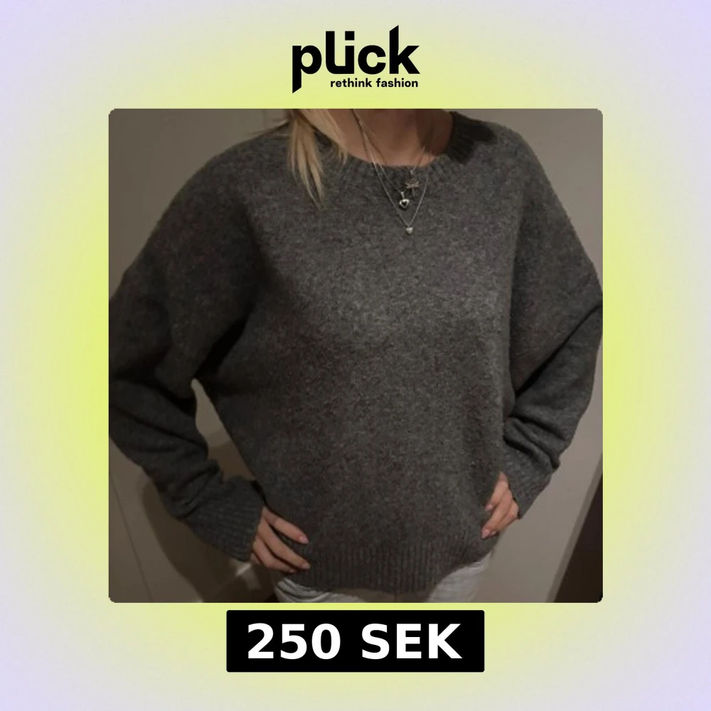 Mysig grå stickad tröja från Zara i storlek M. Tröjan har en klassisk rund halsringning, långa ärmar och ribbade muddar vid ärmslut och nederkant. Perfekt för lager-på-lager och chill dagar.