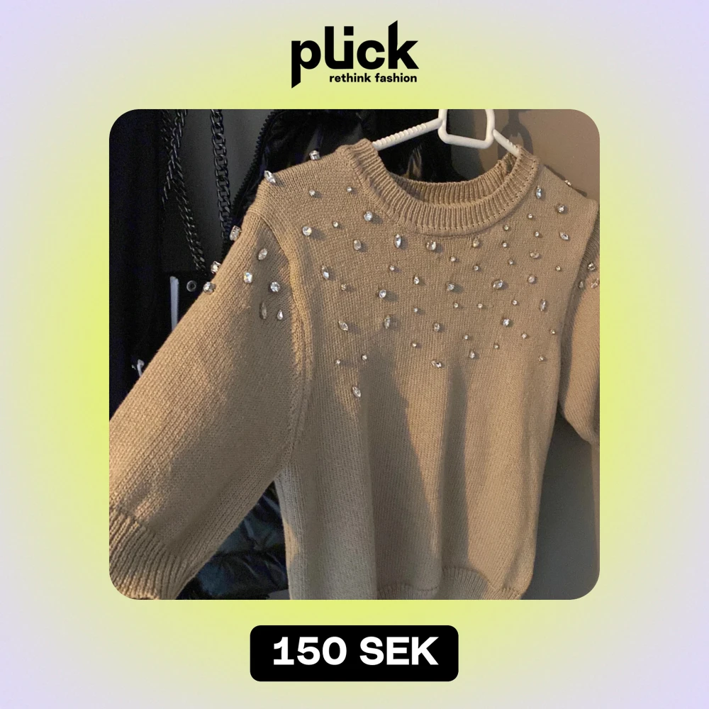 Säljer en superfin beige stickad tröja från Zara. Den har glittriga pärlor över axlarna och bröstet som ger