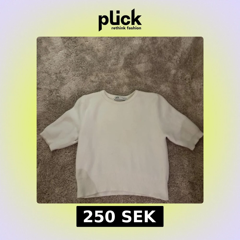 Säljer en enkel och stilren vit stickad tröja från Zara i storlek M. Tröjan har rund halsringning, korta ärmar och ribbade detaljer vid hals, ärmslut och nederkant. Perfekt för dig som gillar minimalistisk och clean stil.