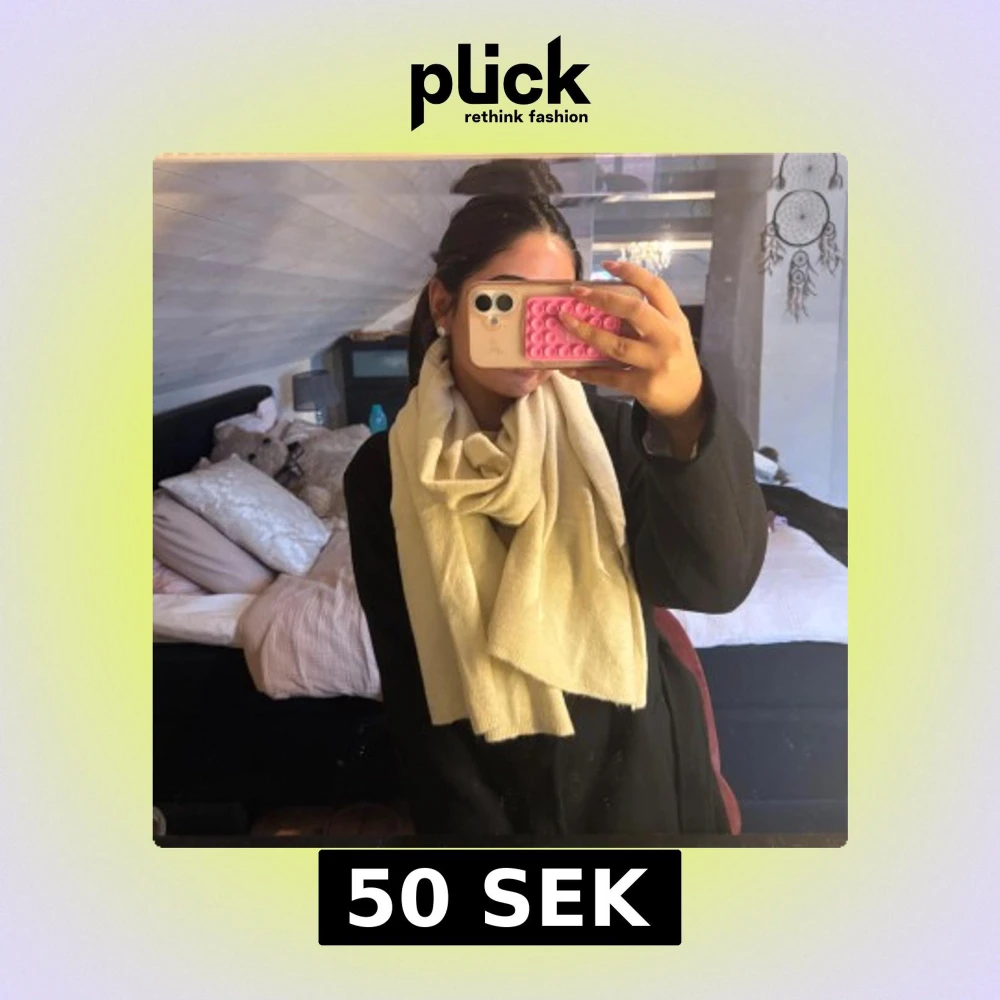 Säljer en stor och mysig beige stickad halsduk som är perfekt att svepa runt halsen. Den har en enkel och stilren design utan mönster och är gjord i ett mjukt material som känns skönt mot huden. Passar dig som gillar klassiska accessoarer.