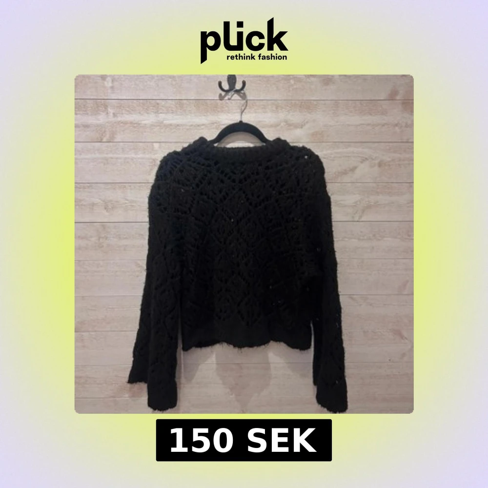 Säljer en svart stickad tröja från Zara med snyggt virkat mönster och lång ärm. Tröjan har en loose fit och är perfekt för lager-på-lager-stil. Superfin till både jeans och kjol för en trendig look.