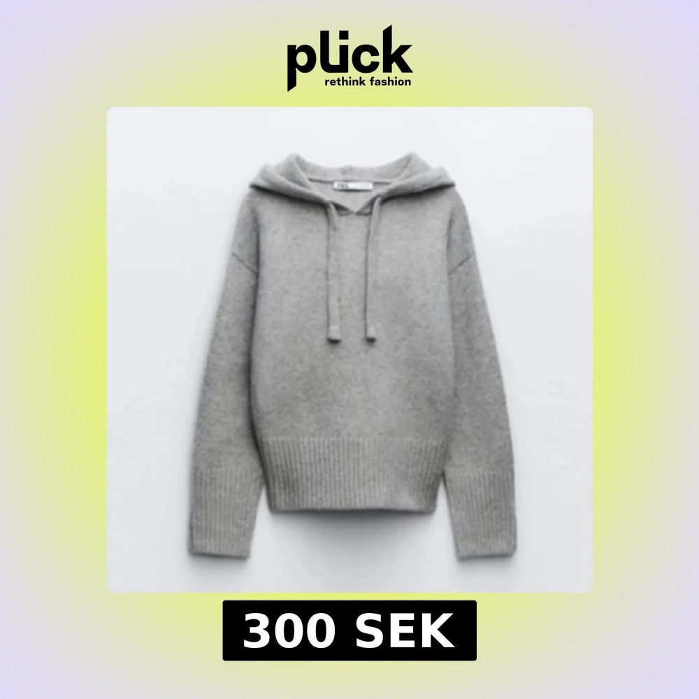Populär grå stickad hoodie från Zara med tjocka muddar. Varm! Använd ett fåtal gånger.