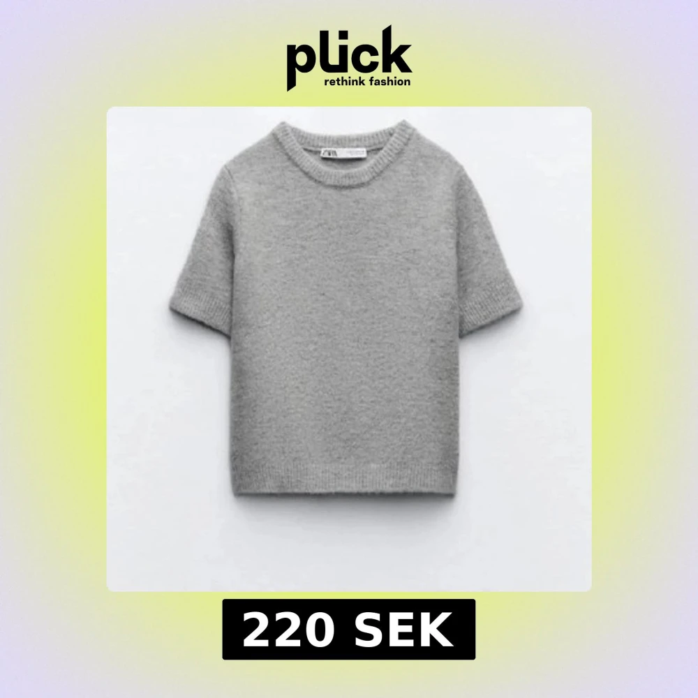 Supermjuk grå stickad tröja från Zara med korta ärmar och rund hals. Perfekt för lager-på-lager och chill vibes. Ribbstickade kanter vid ärmslut och nederkant ger en clean look. Enkel att matcha med allt i garderoben.
