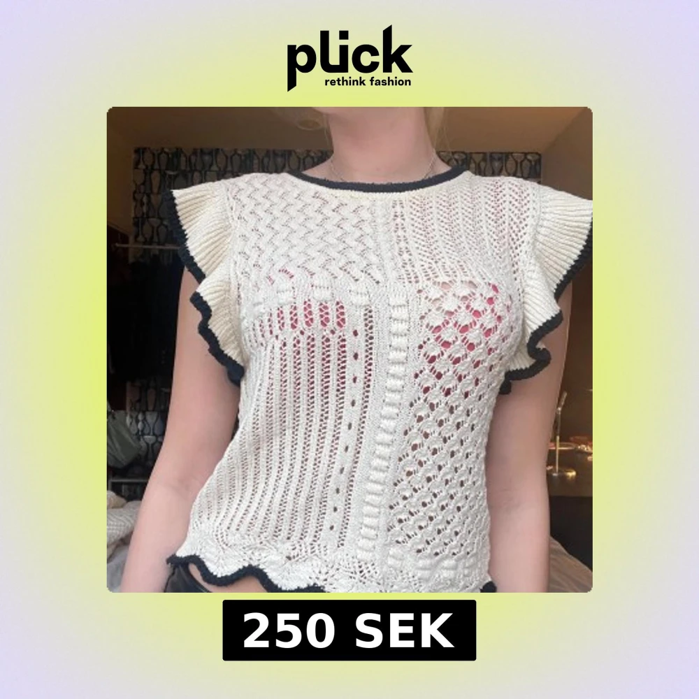 Superfin vit stickad blus från Zara med svarta kanter och volangärmar. Blusen har ett genombrutet mönster i olika stickade strukturer och vågig nederkant. Perfekt för dig som gillar unika detaljer och en söt, trendig look.