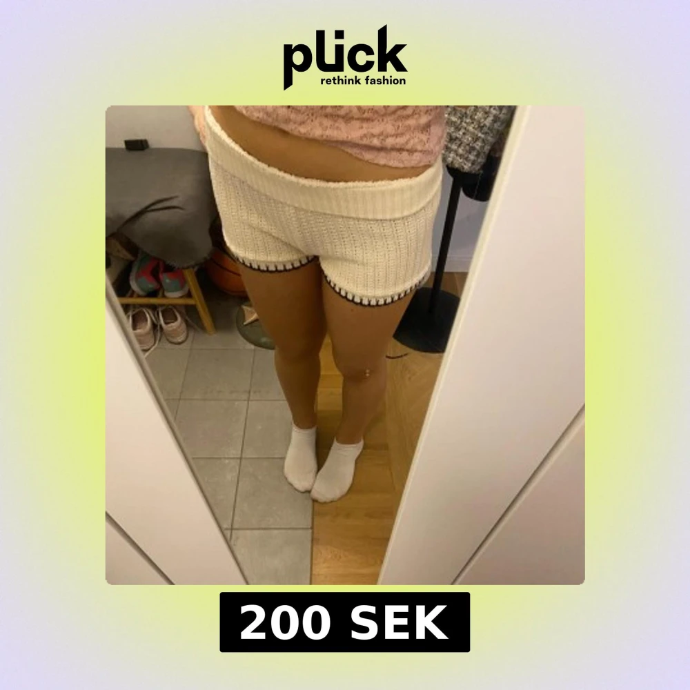 Säljer ett par stickade shorts i vit färg med ribbad struktur och svart kant längst ner. Från Zara