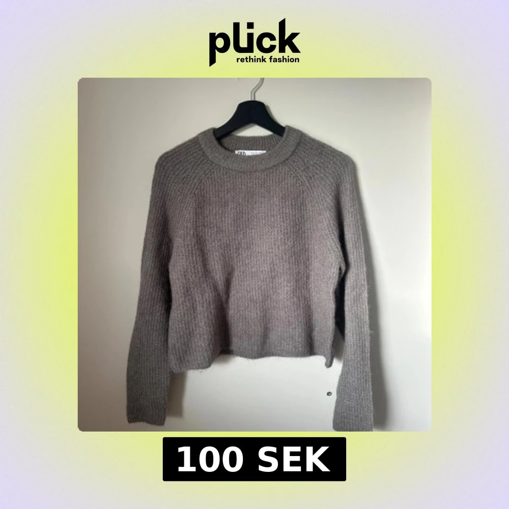 Mysig beige stickad tröja från Zara i storlek S den är endast använd 1 gång och den är ganska liten i storleken💕