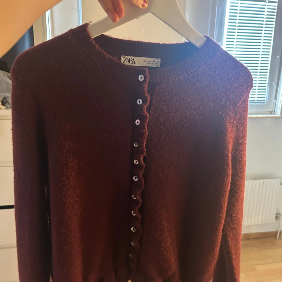Fin vinröd stickad kofta ifrån zara storlek S oanvänd