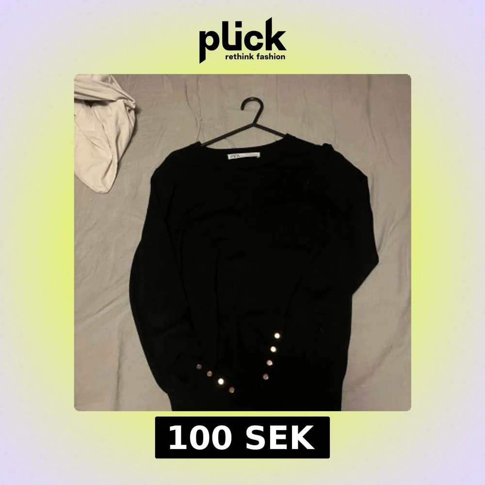 Svart tröja från Zara med rund halsringning och dekorativa guldfärgade knappar vid ärmslutet. Perfekt för dig som gillar en enkel men ändå snygg look. Långärmad och mjuk i materialet.