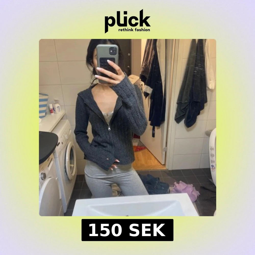 Mysig mörkgrå stickad cardigan jacka med dragkedja framtill. Jackan har ribbad struktur, lång ärm och en lite loose passform. Perfekt att slänga på sig när det är kyligt ute.