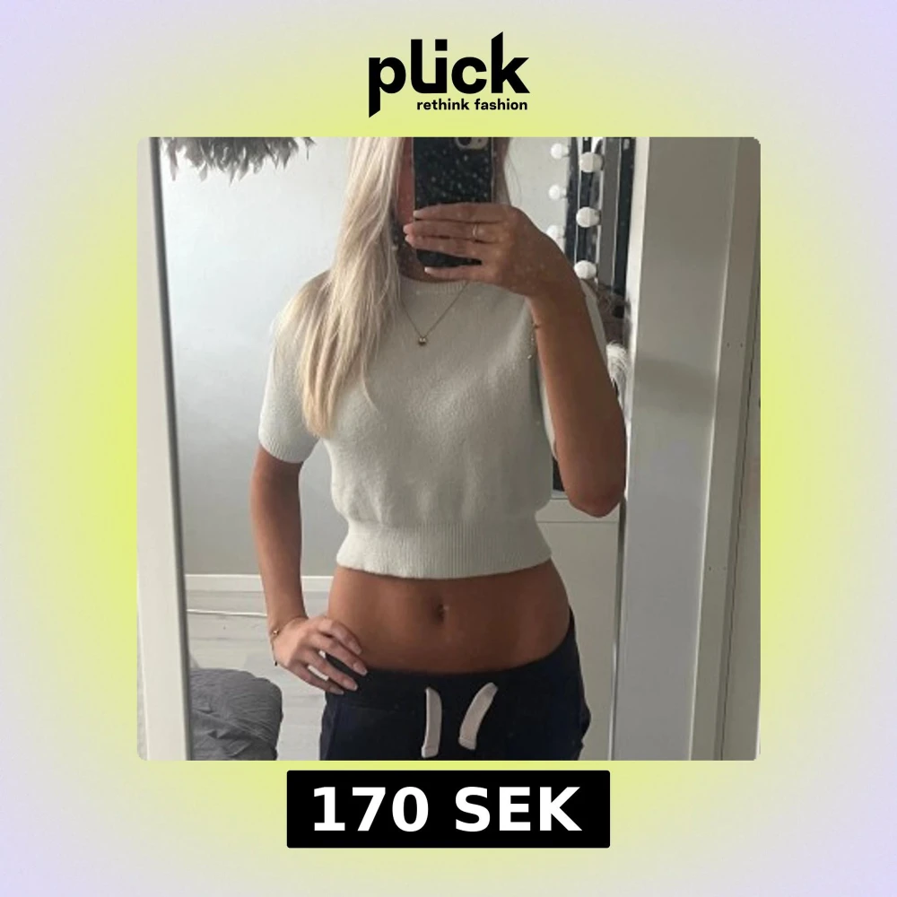Säljer en vit croppad stickad topp från Zara. T-shirtrmad, rund halsringning och ribbad nederkant. Enkel och stilren modell som är perfekt för en trendig look.