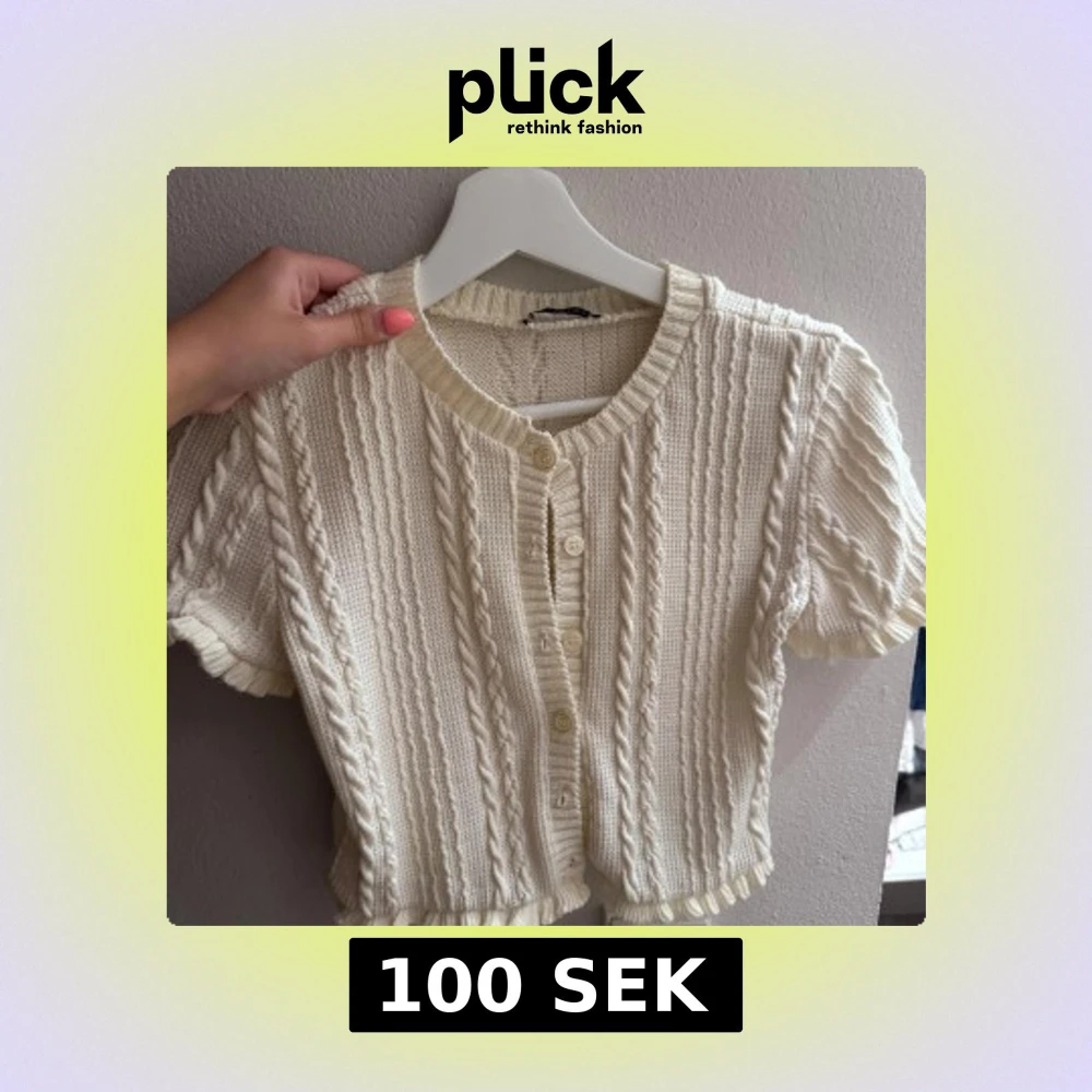 Supersöt krämvit stickad blus med korta ärmar och dekorativa flätmönster från Zara
