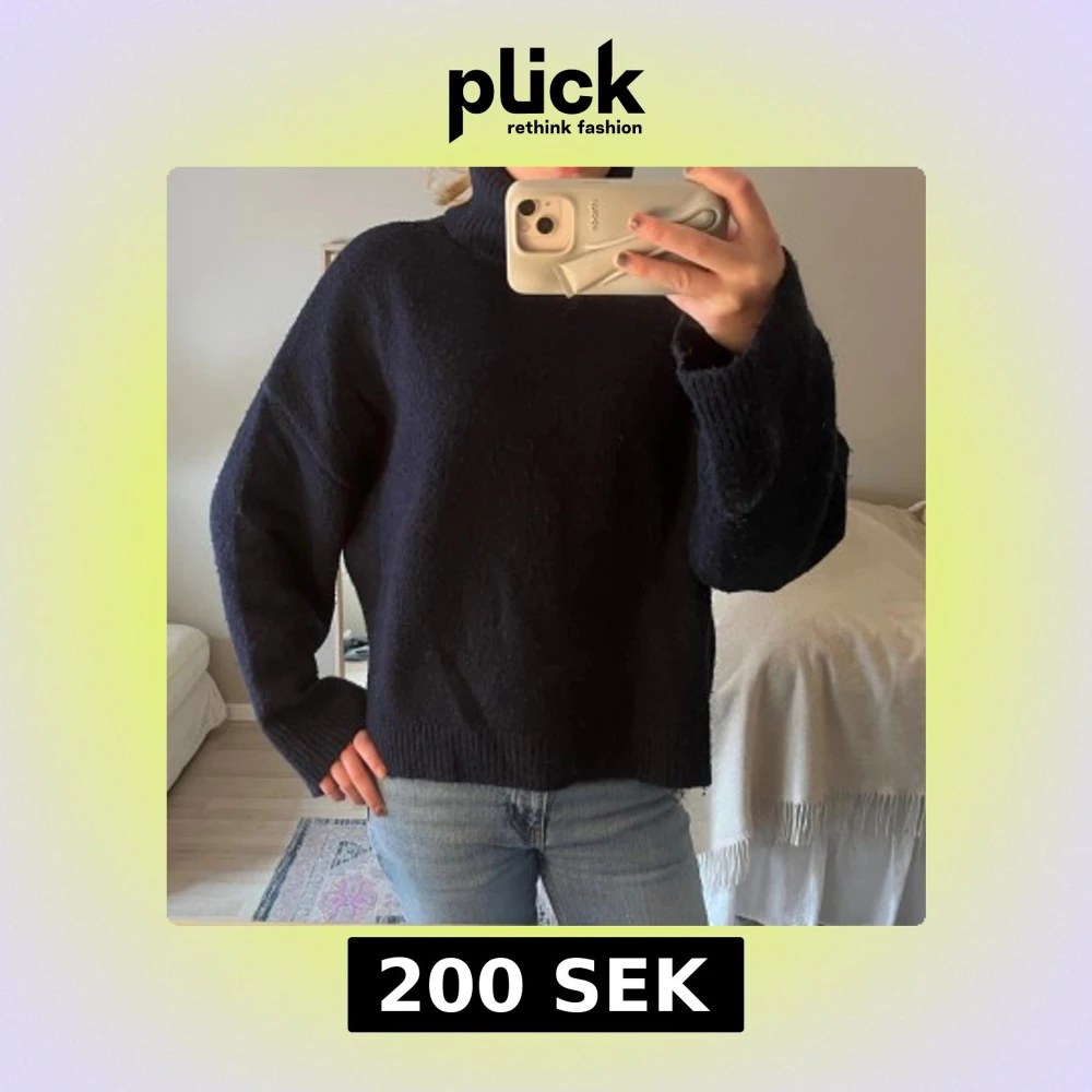 Mysig mörkblå stickad polotröja med lång ärm och hög krage. Tröjan har en avslappnad passform och breda ribbade muddar vid ärmslut och nederkant. Perfekt för kalla kvällar nu till sommaren!🍓