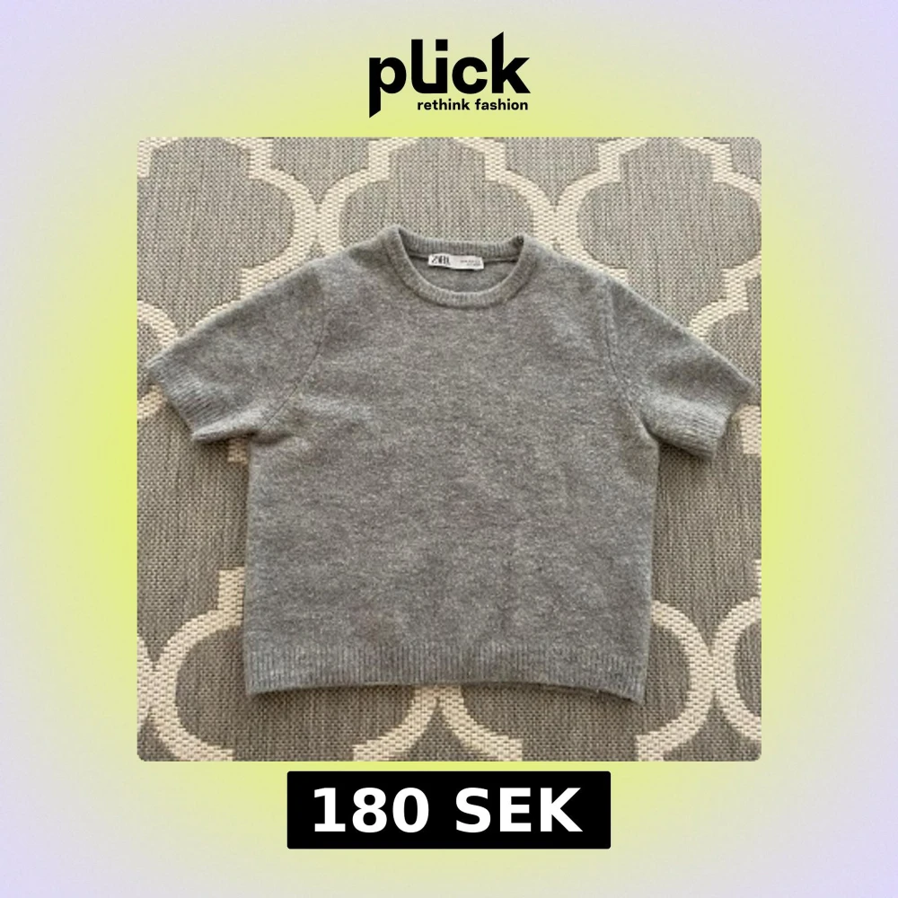 Supermjuk grå stickad tröja från Zara med korta ärmar. Använd och tvättad. Använd ett flertal gånger men sedan inte mer. Finns ej att köpa på Zaras hemsida längre.