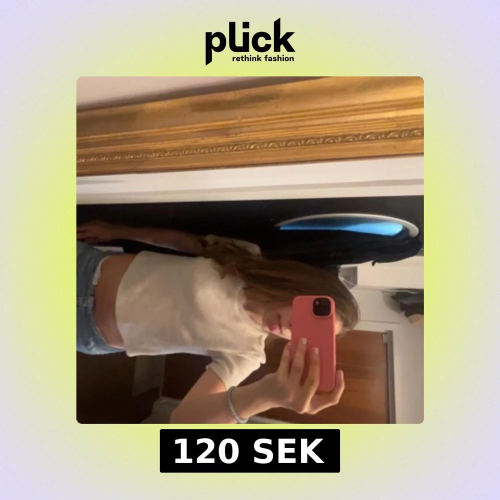 Säljer en vit croppad stickad topp med korta ärmar och rund halsringning. Perfekt för en avslappnad och trendig stil. Passar snyggt till jeans eller kjol.