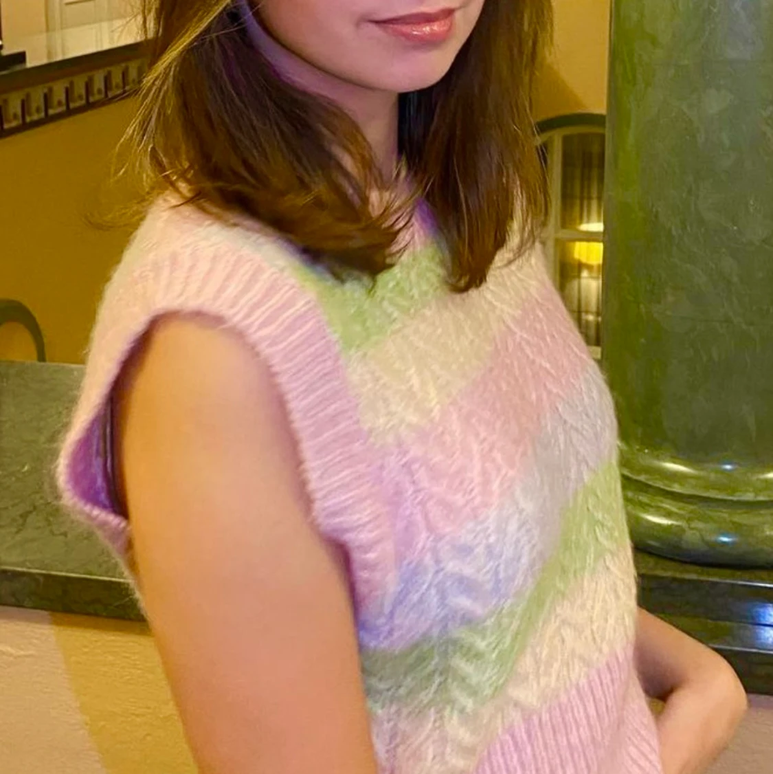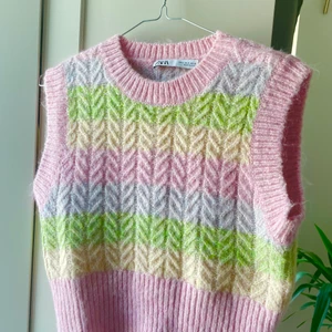 En färgglad stickad väst från zara i storlek S. Använd fåtal gånger och därav nyskick. Superfint & mysigt plagg.
