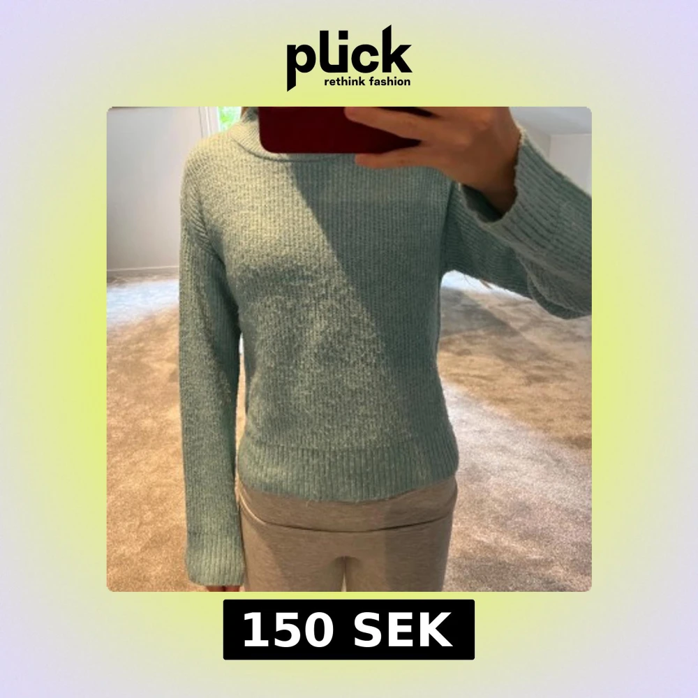 Mysig ljusblå stickad tröja med långa ärmar. Tröjan har en ribbad kant vid ärmslut och nederkant, vilket ger en snygg och enkel look. Perfekt för dig som gillar en chill och stilren vibe.
