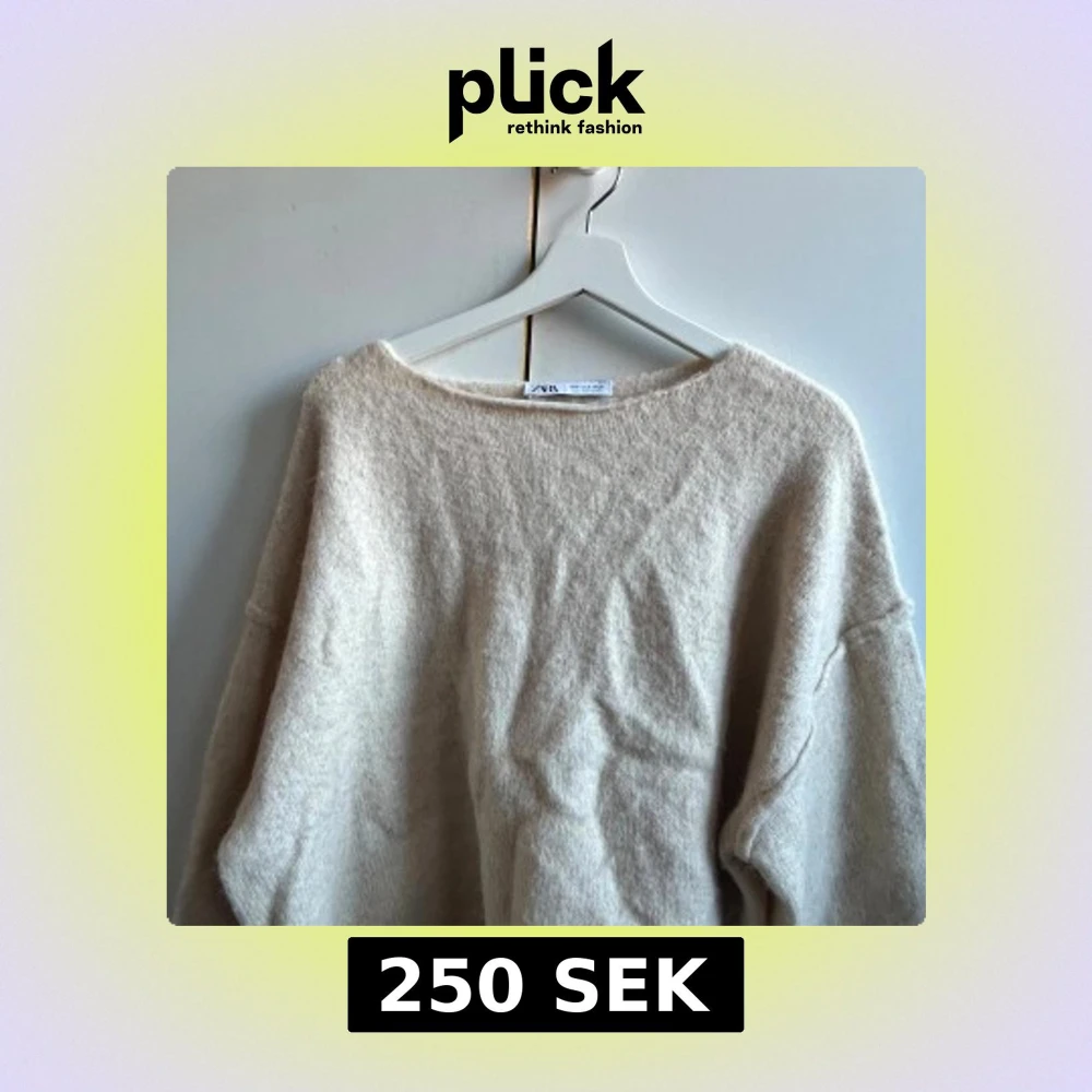 Supermjuk och oversized stickad tröja från Zara i beige ton. Tröjan har en avslappnad offshoulder-passform och långa ärmar. Endast provad