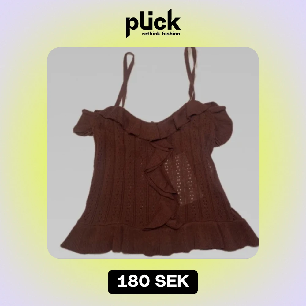 Söt brun stickad topp med volanger. Toppen är i en mjuk och skön kvalitet och är helt oanvänd. Passar storlek S-M!