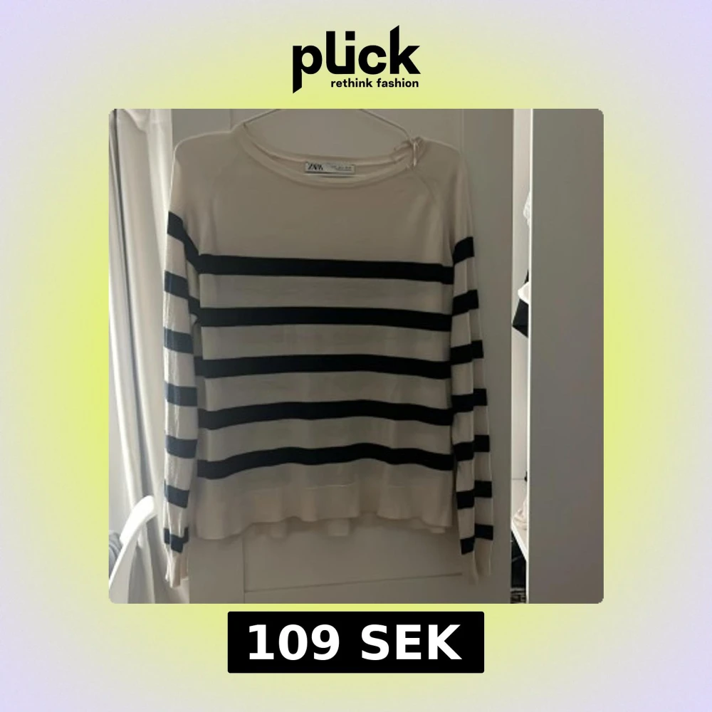 Snygg långärmad tröja från ZARA i vit med breda svarta ränder. Tröjan har en klassisk rund hals och är gjord i ett mjukt, tunt stickat material som känns skönt mot huden. Perfekt för dig som gillar enkel och stilren design.