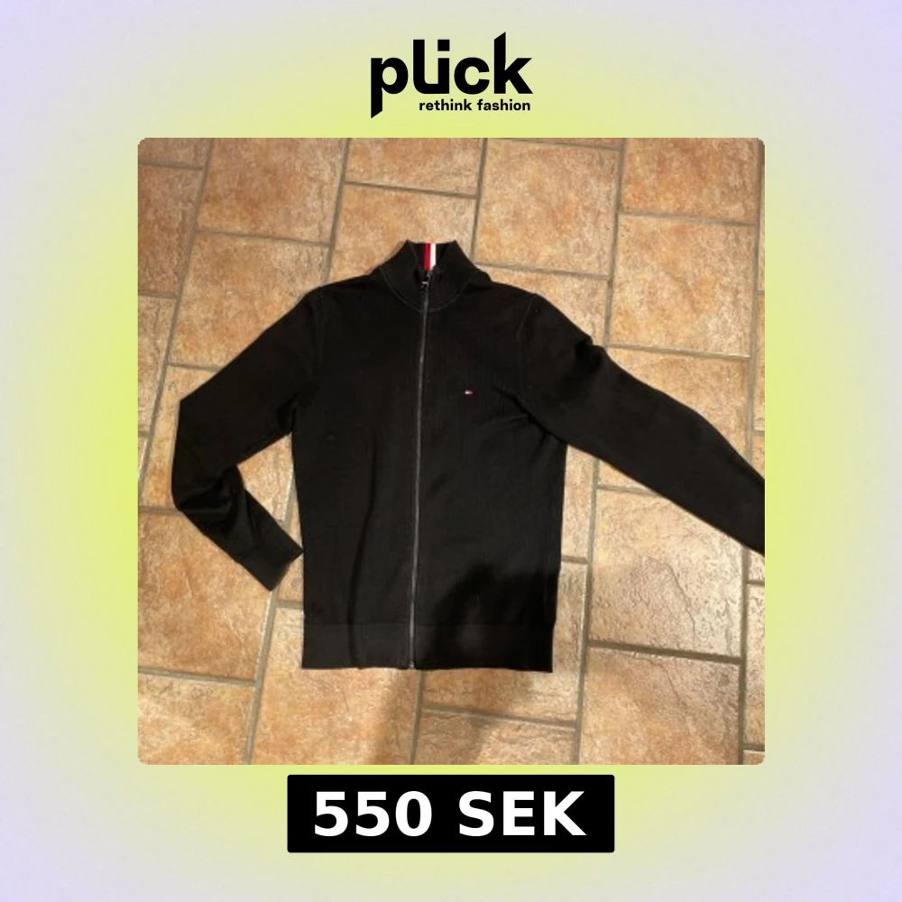 Svart stickad kofta från Tommy Hilfiger med hel dragkedja och ståkrage med snygga rödvita detaljer. Liten logga på bröstet och ribbade muddar. Perfekt för dig som gillar klassisk stil med en modern touch.