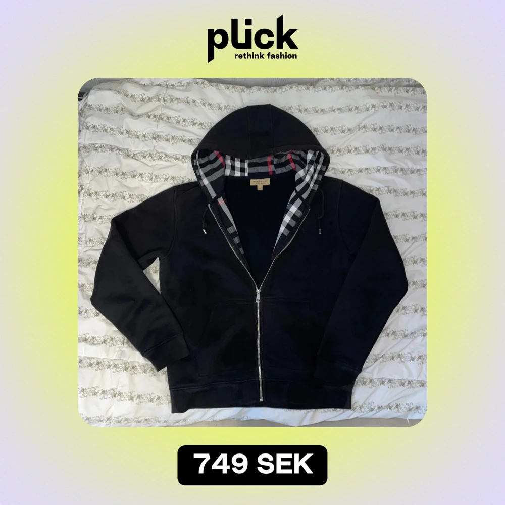 Säljer en snygg svart kofta från Burberry i storlek M.Kan gå ner i pris vid snabbaffär, Den har en klassisk rutig insida i huvan och dragkedja framtill. Perfekt för höst och vår, med långa ärmar och mjukt bomullsmaterial. Passar både till vardags och lite finare tillfällen. 🖤