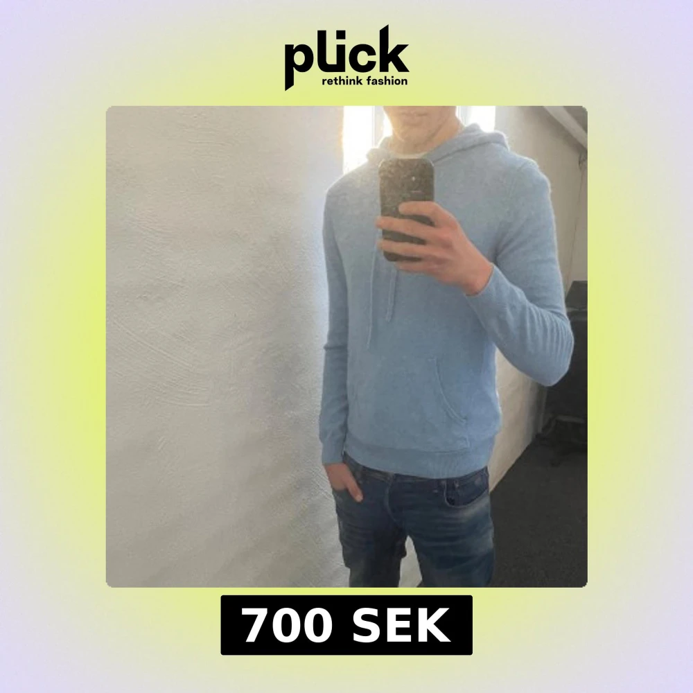 Säljer en supermjuk ljusblå tröja i 100% kashmir. Den har en klassisk design med dragsko i huvan och en praktisk magficka. Tröjan passar storlek S men även M då jag är 189 cm. Hör av er vid funderingar!