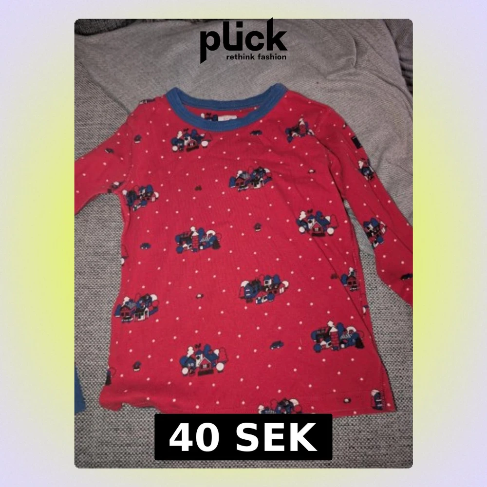 Säljer en röd långärmad tröja från Polarn O. Pyret med blå kant vid halsen. Tröjan har ett gulligt vintermönster med små hus och snöprickar över hela plagget. Tillverkad i mjuk bomull, perfekt för kalla dagar och mysiga stunder.