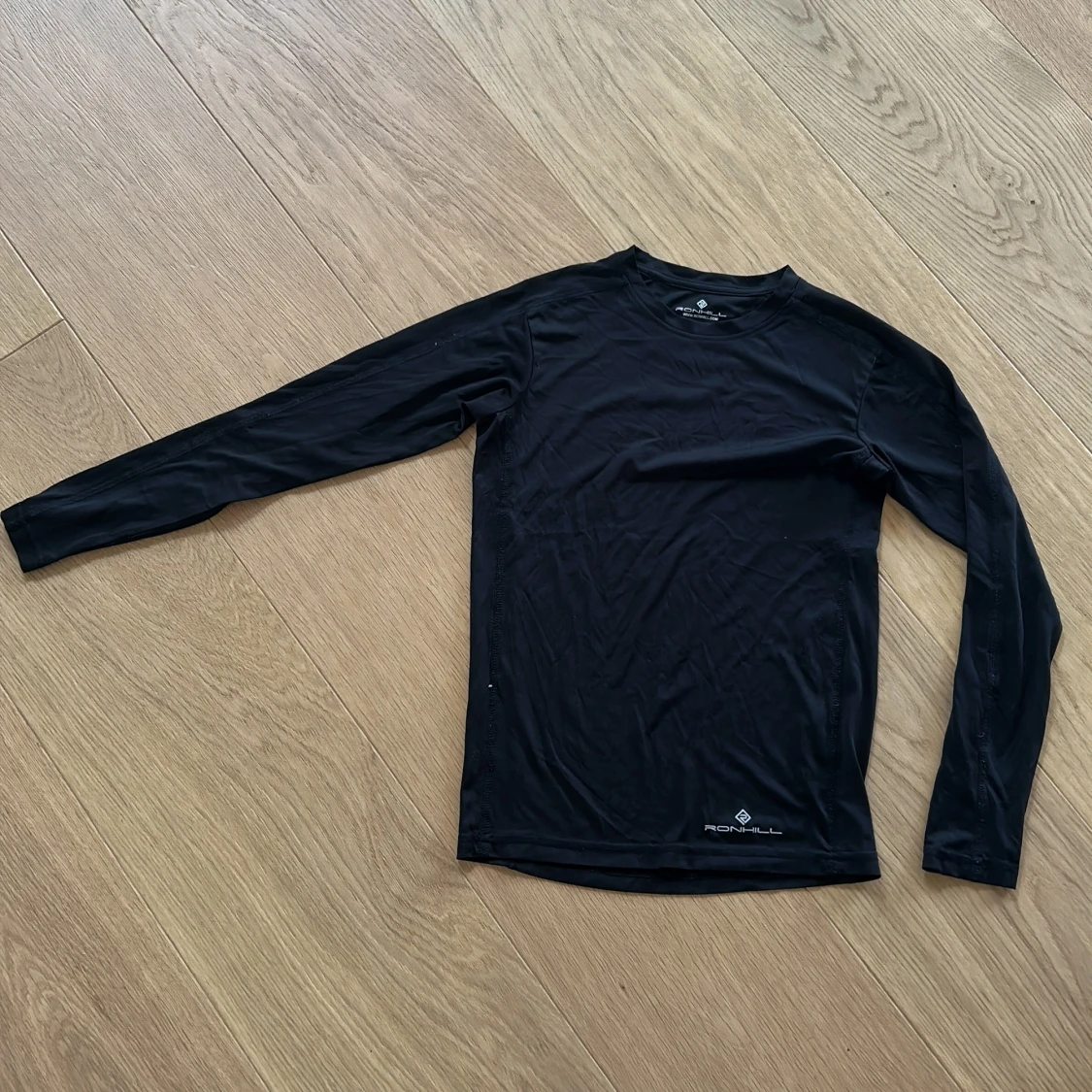 Svart långärmad träningströja från Ronhill, perfekt för löpning eller annan sport. Tröjan är gjord i lätt och smidig polyester som andas bra. Enkel design med rund hals och diskret logga framtill. Sitter skönt och är lätt att röra sig i.