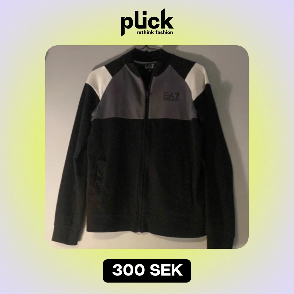 Svart vit zip crew neck från EA7. Okej skick. Storlek 160. Nypris: 900