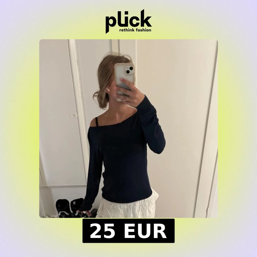 Mörkblå stickad tröja med offshoulder-design och långa ärmar. Tröjan har en enkel, stilren look och är mjuk och skön att bära. Perfekt för dig som gillar en avslappnad men ändå trendig stil.